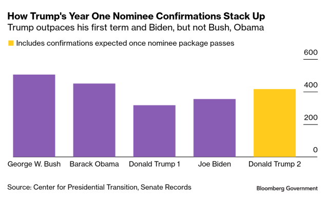 Change the rules, diminish the slow-walking power of the minority party and read the receipts: Senate Republicans will have confirmed more of Trump’s nominees this year than former President Joe Biden secured during his first year in office.