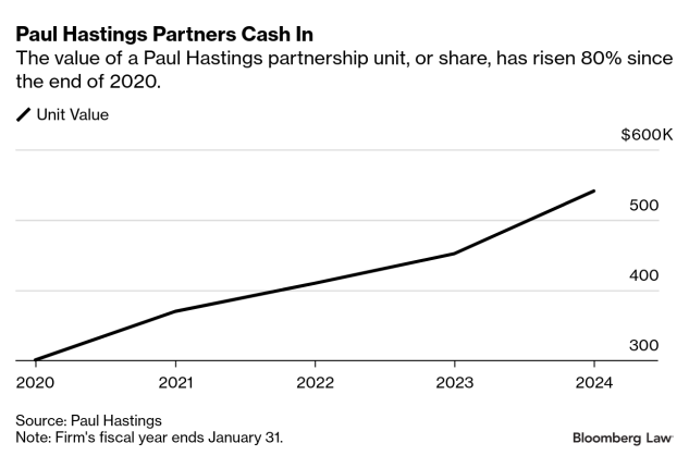 Paul Hastings’ four-year surge in the value of its partnership units has been key to attracting top talent from rivals.