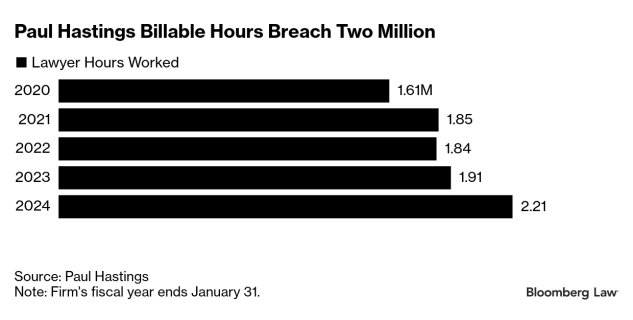 The firm’s attorneys billed a record 2.21 million hours in 2024, up 15% from the prior year, it said.