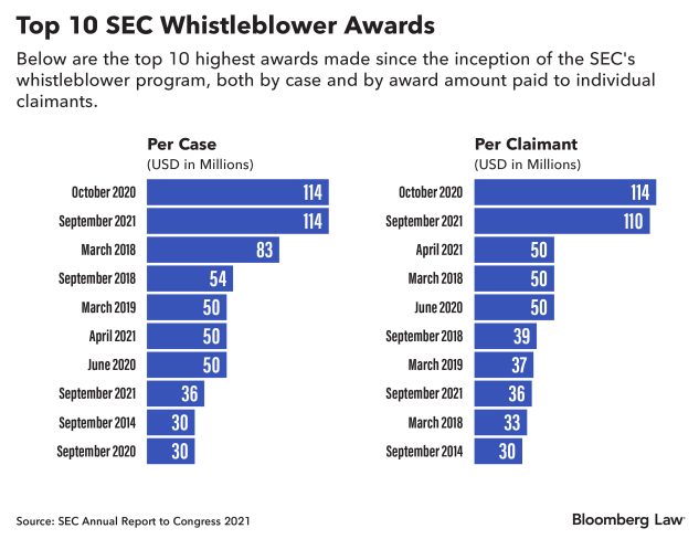 Bloomberg Law spent five months reviewing all 561 final orders made during the history of the Securities and Exchange Commission’s whistleblower program, cross-checking the facts against court records and agency documents, and attempting to get details about the award payments through a Freedom of Information Act request.