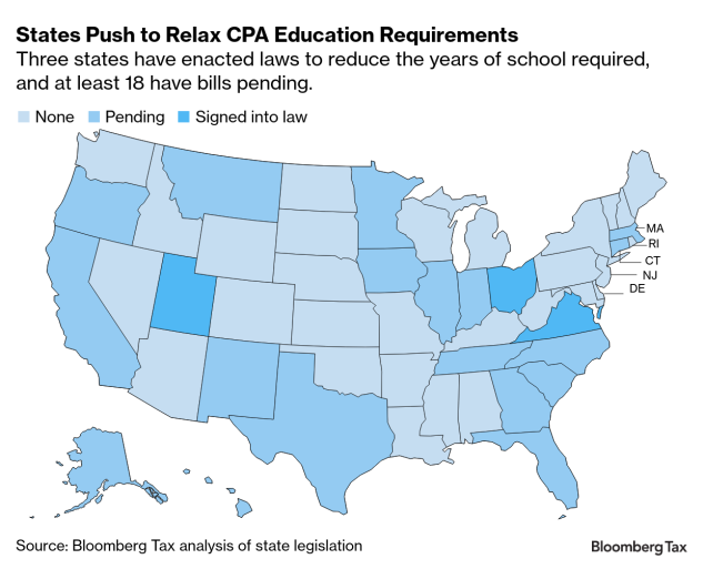 The legislation takes aim at education rules that date back to the 1990s requiring CPA candidates to earn an additional year of college credits, delaying the start of their careers. The extra schooling, known as the 150-hour rule, was intended to combat increasingly complex tax and accounting rules.