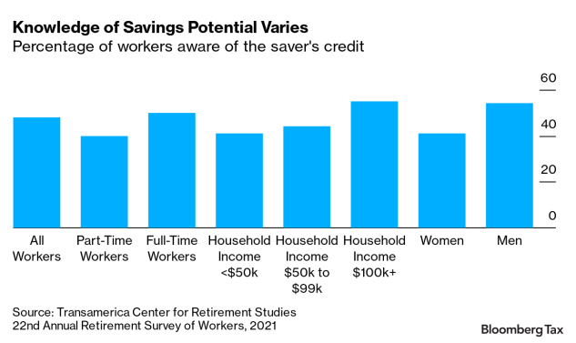 Fewer than half of U.S. workers are aware of the saver’s credit, a tax credit available to low- to moderate-income taxpayers who contribute to tax-advantaged accounts, according to findings from a new research report led by my team at Transamerica Center for Retirement Studies® (TCRS) in collaboration with Transamerica Institute®.