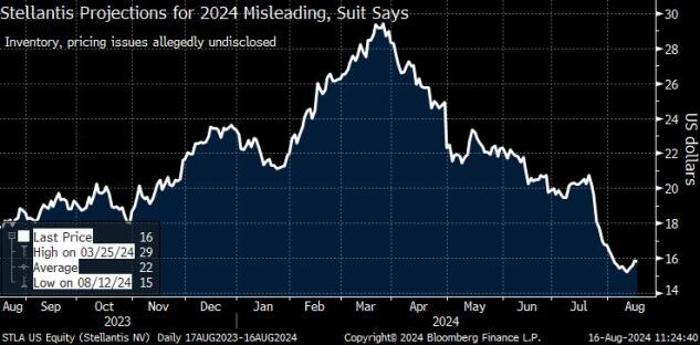Stellantis NV failed to disclose problems with inventory, pricing, market share, and expansion when projecting 2024 revenue, an investor says in a proposed class action.